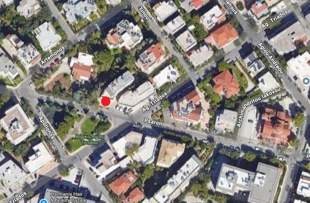 Ακριβώς απέναντι βρίσκεται το πάρκο της Αγίας Τριάδος με τη μοναδική παιδική χαρά της περιοχής και χώρο πρασίνου για τον οποίο οι κάτοικοι έδωσαν μάχη να μην παραχωρηθεί για τοποθέτηση τραπεζοκαθισμάτων απ’ τη Δημοτική Αρχή σε παρακείμενη επιχείρηση εστίασης που στεγάζεται στο κτίριο της Ψαρών 43.